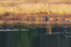 Mid to late October is traditionally referred to as the "Golden Encore". Peak colours have come and gone, but the yellows and golds of the tamaracks and birch bring another wave of beauty to the landscape. This is one of my favourite times in the park! Moose are moving around and in prime condition. The rut (mating season) has just finished up -- between replenishing their energy and working off some excess hormones, some interesting behaviour can be seen. Beavers are busy in the waterways and shorelines getting a cache of food ready for winter. And the morning landscapes are typically gilded with frost and fog.